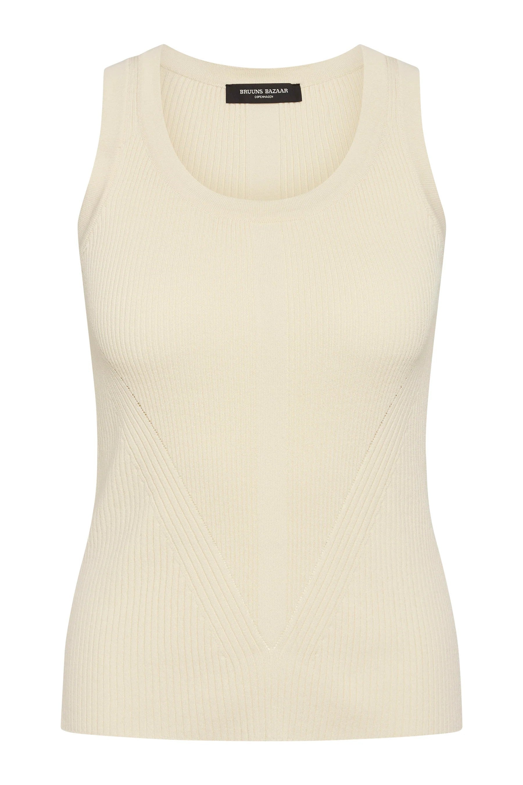 This top has a round neck and goes higher at the back. The top is designed in ribbed knit material, making it more elastic to wear.
