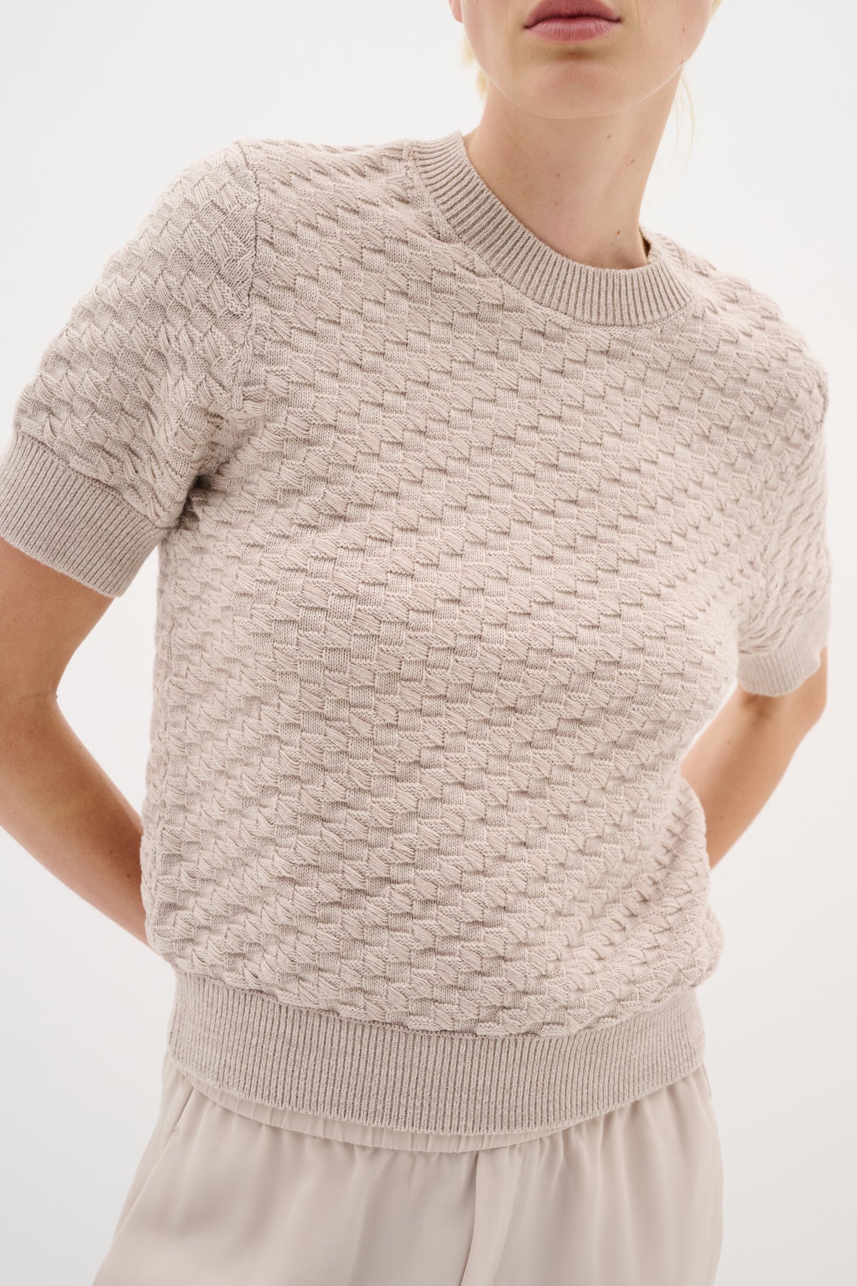Lighweight knit to take you through the seasons. Soft neutral colour giving this little top versatility!