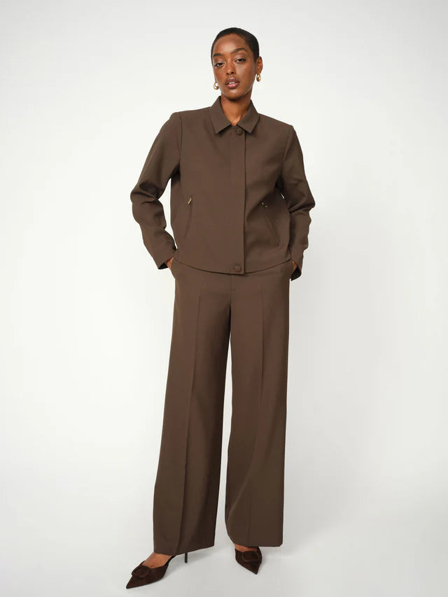 Crafted with a mid to high-rise waist and a straight fit, these tailored pants are a quintessential addition to any classic wardrobe. Featuring pressed creases and a concealed zipper closure, they exude timeless sophistication. Tuck in a feminine blouse and complete the look with a matching blazer for effortless elegance.