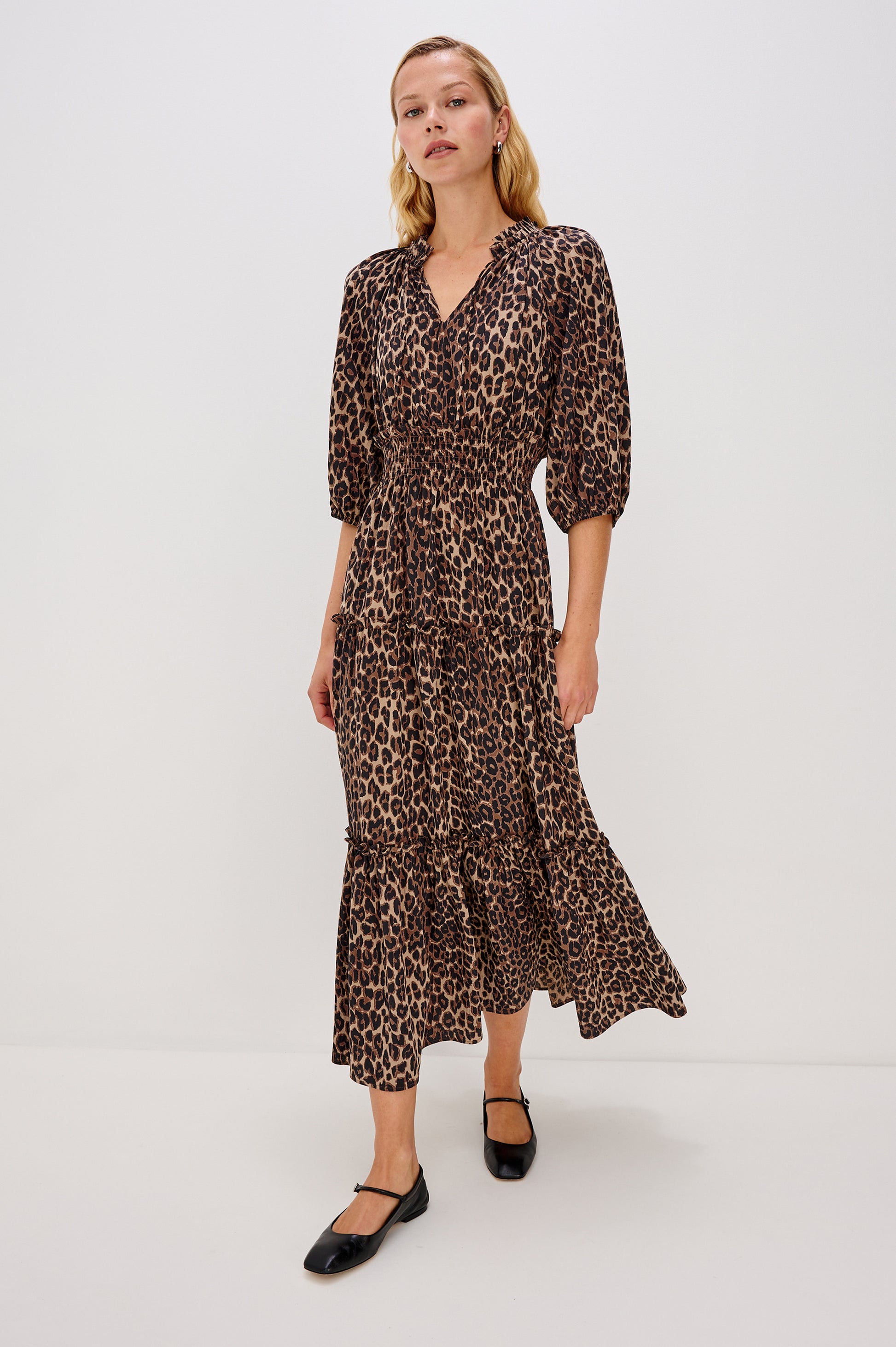 The Caterine is tiered maxi crafted from structured, breathable cotton poplin. With a cinched silhouette, neck ties and ruffled details, this dress is feminine and functional.
