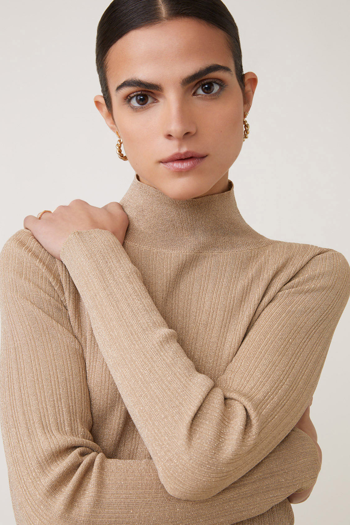 - Thin gold standup jumper with lurex touch