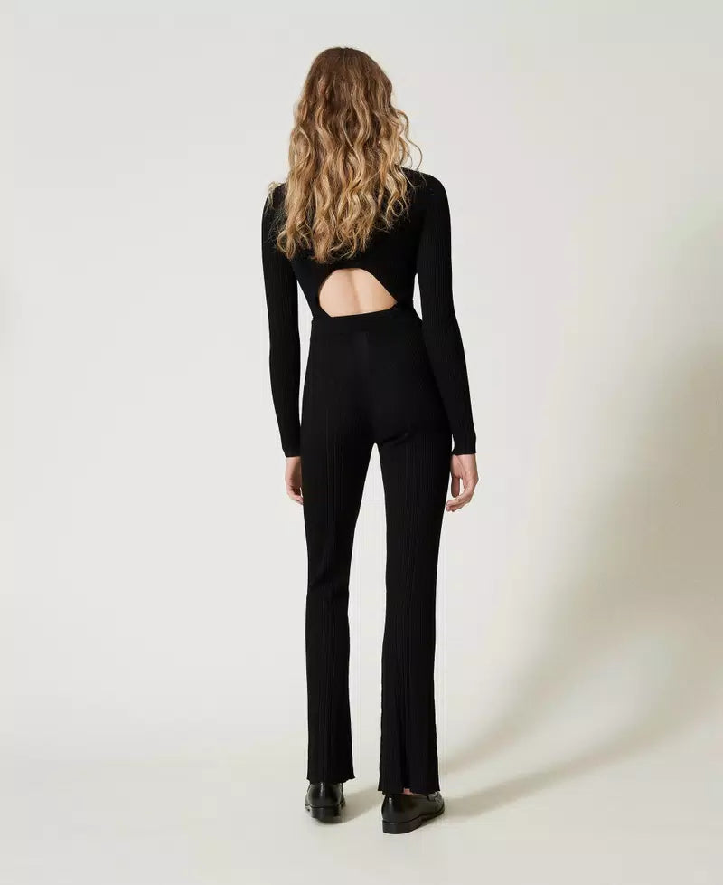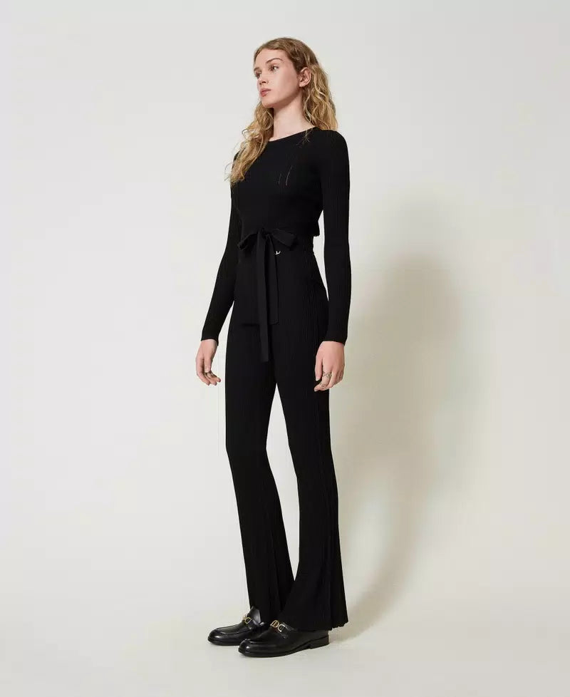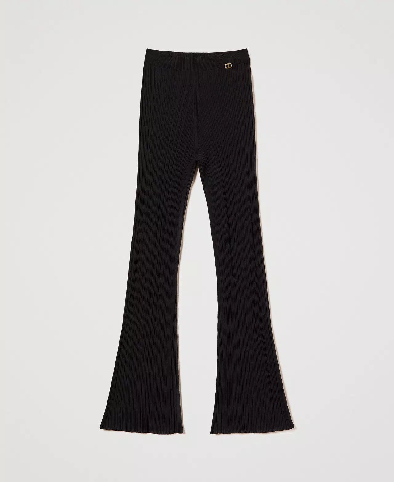 Comfy, elegant chic - Flared Trousers made in Italy from ribbed stretch viscose blend with elasticated waist, metal Oval T logo plate, flared fit.